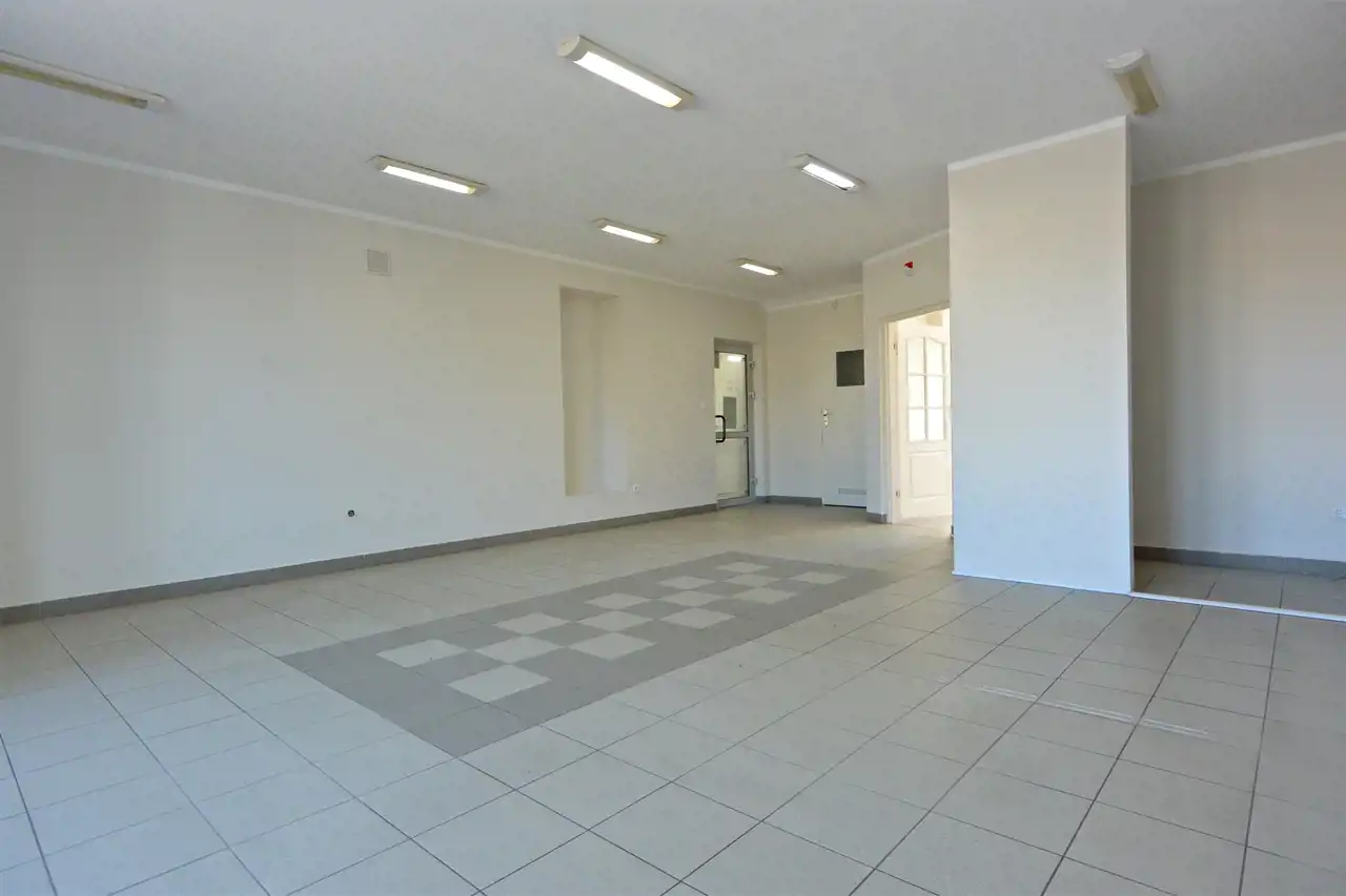 For rent: a premises with an area of approx. 64.3 m², located on the first floor of a commercial and service building in the center of Daleszyce. Entrance to the unit through a shared staircase. The building has two entrances: from the front and from the yard.