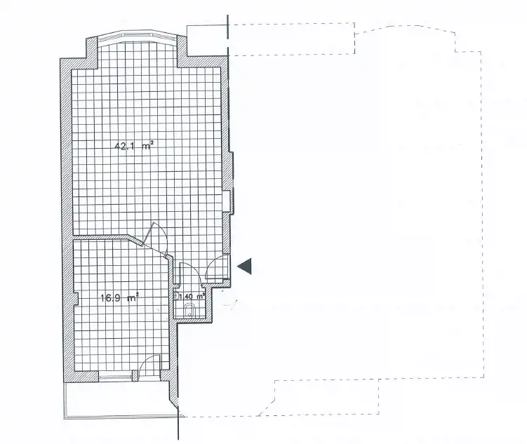 - pomieszczenia o powierzchni 42,1 m2 z dużymi witrynami