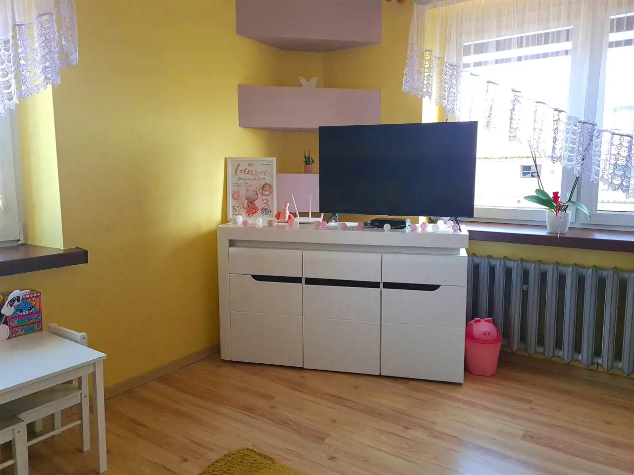 Znajdują się tutaj : trzy bardzo duże , przestronne i widne pokoje , duża kuchnia , przedpokój , oraz duża i wygodna łazienka z WC .