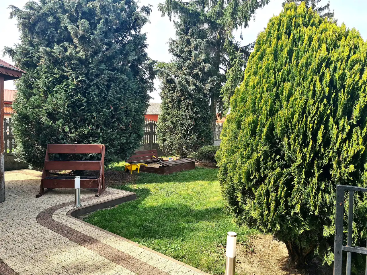 W tylnej części działki znajduje się sad owocowy oraz warzywnik . stąd zaś wystarczy przejść kilkadziesiąt kroków , by znaleźć na terenie lasów państwowych i prywatnych .