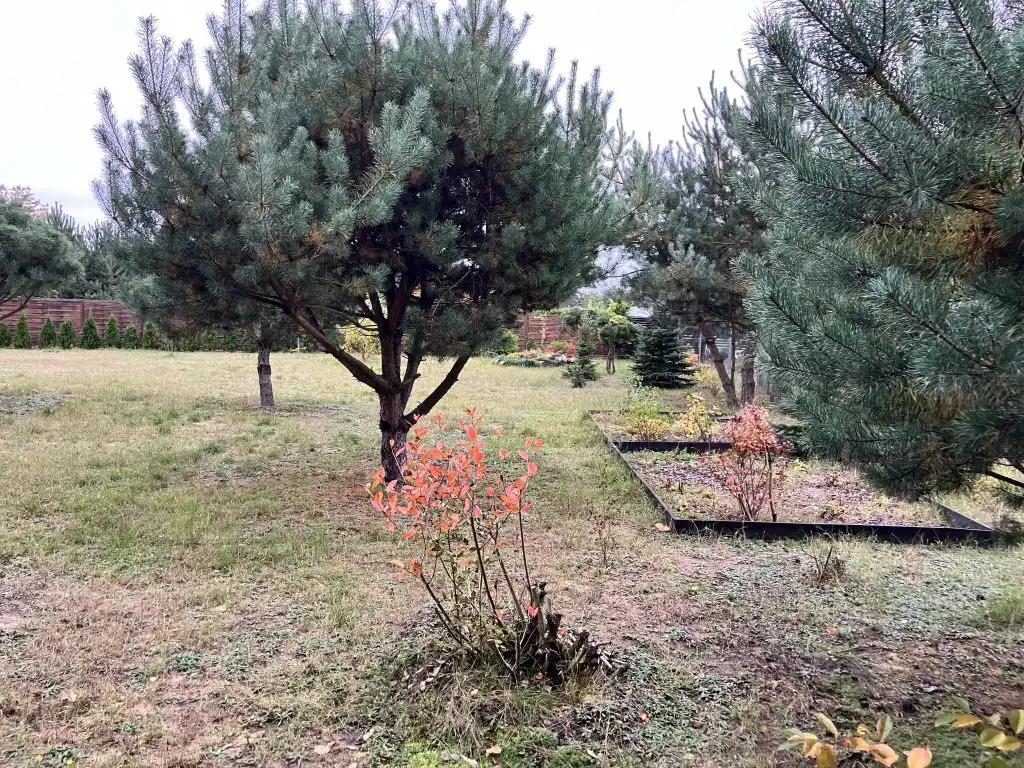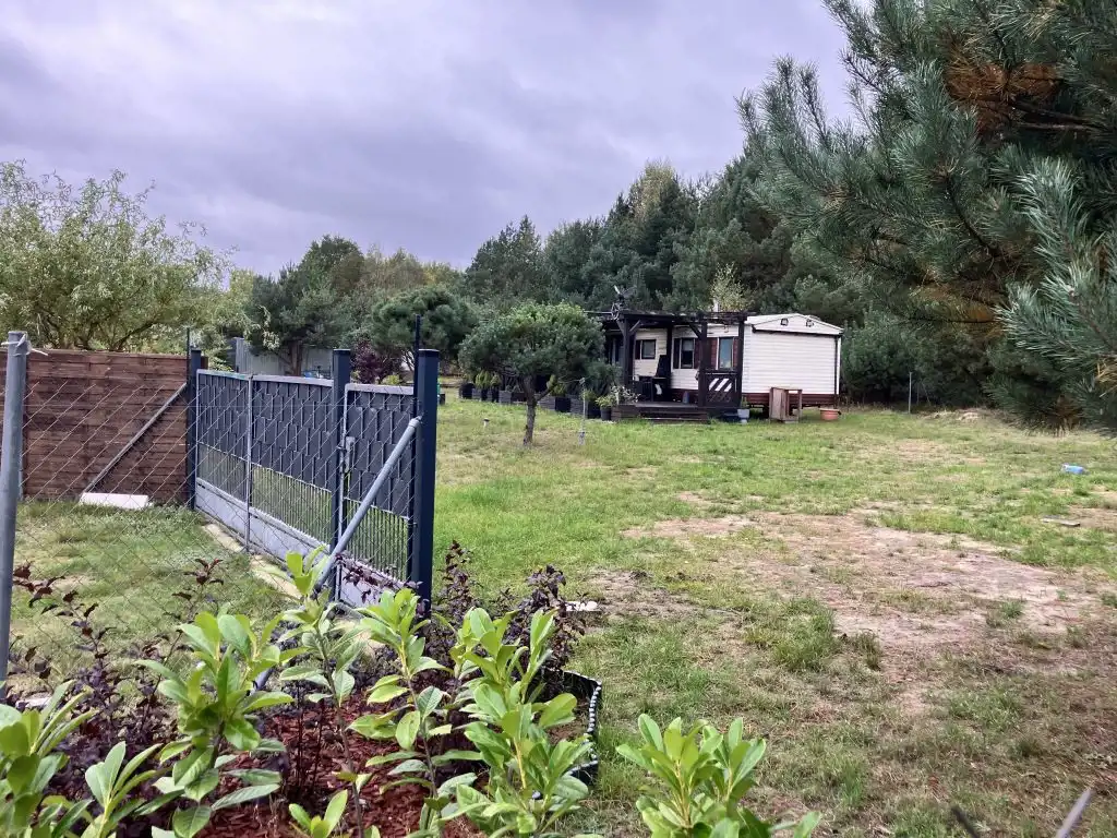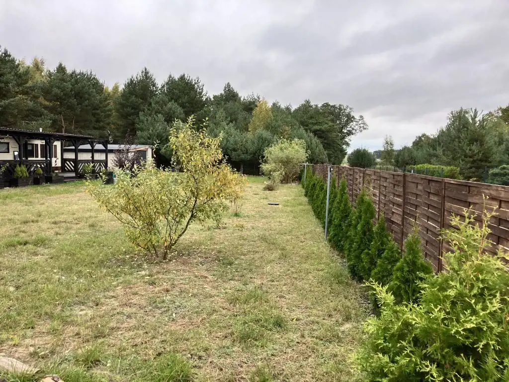 Działka o pow. 1483mkw. wymiary: front ok. 50 m, głębokość ok. 33-26 m., ogrodzona ,zagospodarowana z nasadzeniami , na działce znajduje się domek holenderski o pow. ok 35m2 , w którym znajduje się: "salon" połączony z kuchnią, (rozkładana kanapa , lodówka, kuchenka mikrofalowa, kuchenka na butlę gazową, telewizor, stół z krzesłami, piecyk do ogrzewania na gaz, kurtyna powietrzna - grzejnik) 3 dodatkowe pokoje w tym jedna sypialnia z dwoma łóżkami, szafy i szafki w zabudowie, łazienka z prysznicem, wc.