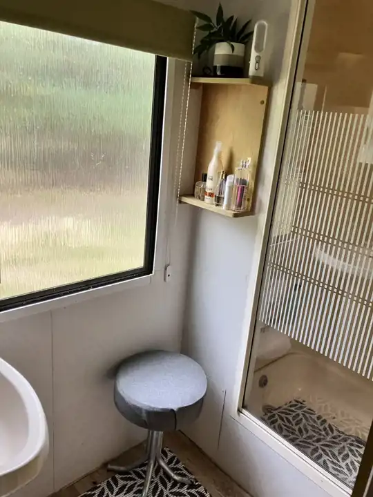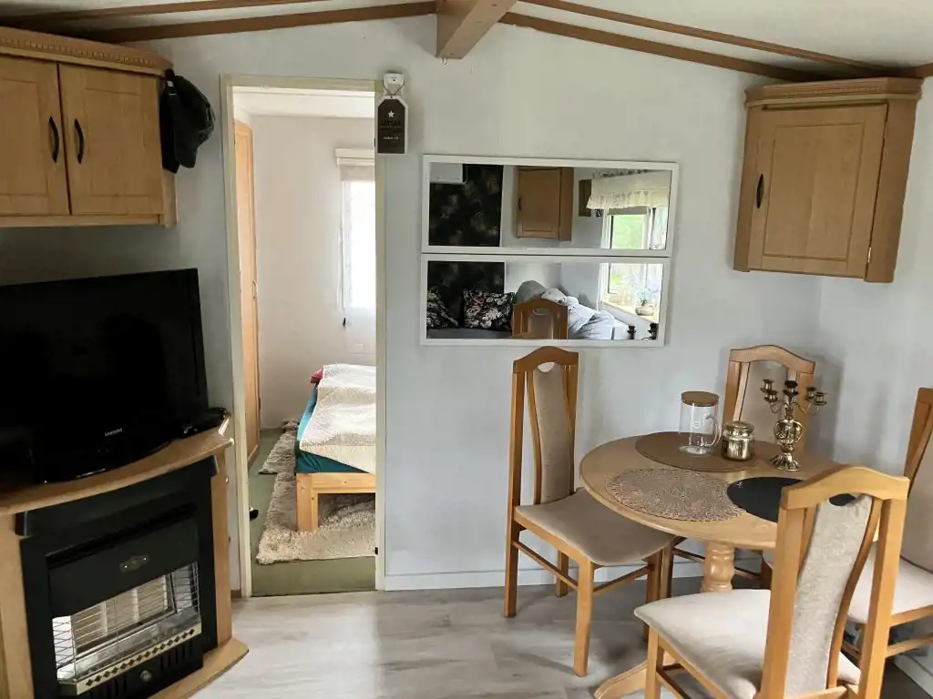 . Zarówno kominek jak i kuchenkę oraz piecyk podgrzewa butla gazowa 11 kg na propan butan, ponadto jest zamontowany w osobnym pomieszczeniu bojler elektryczny 80 litrów do podgrzewania ciepłej wody.