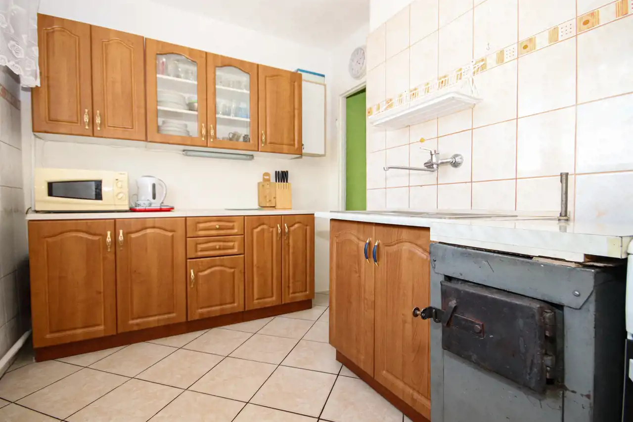 - Oddzielna, widna kuchnia z dużym oknem.