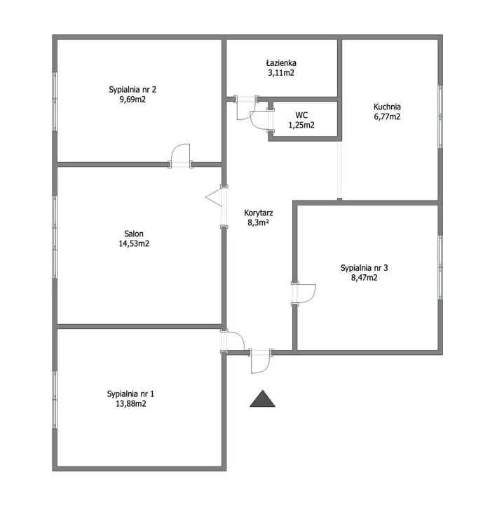 - Układ: 4 pokoje – trzy ustawne sypialnie oraz jasny, przestronny salon.
