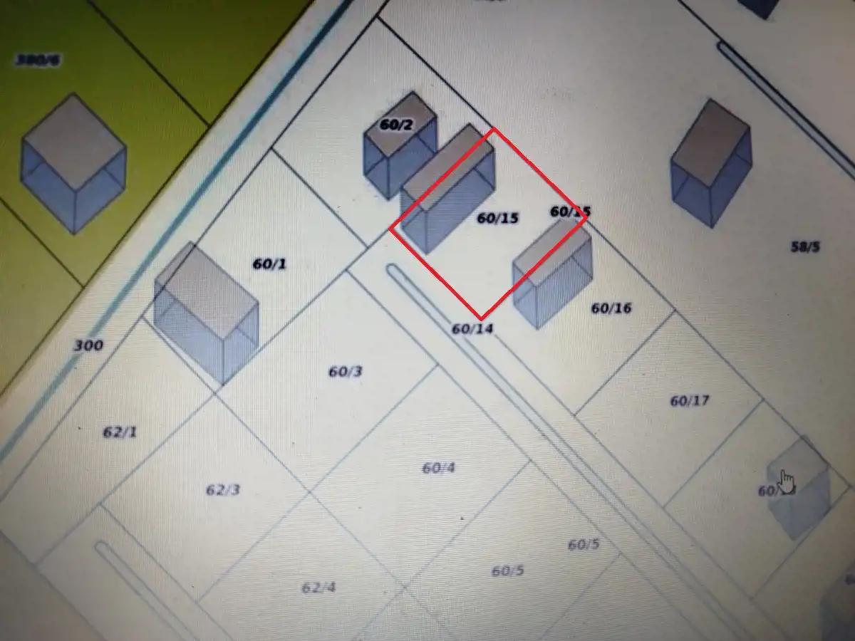 Działka o nr 60/15 sprzedawana razem z udziałem w drodze dojazdowej o nr 60/14.