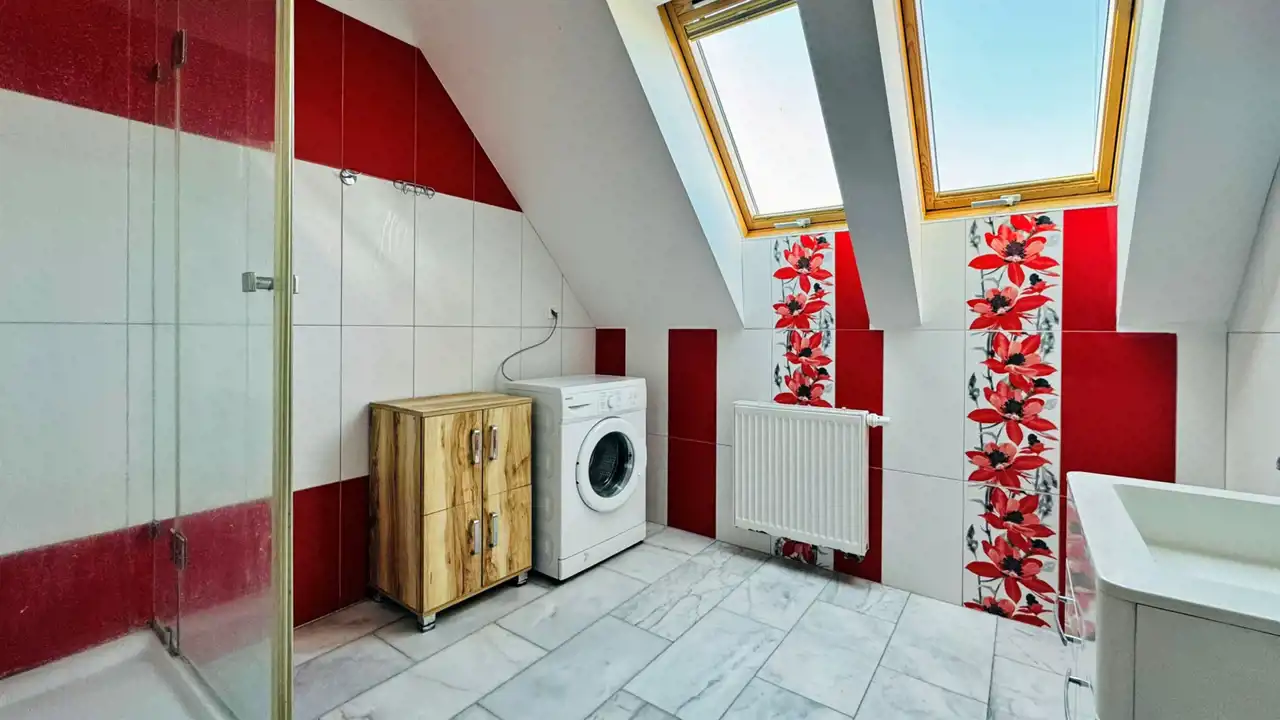 - powierzchnia podłóg: ok. 75 m² (skosy)