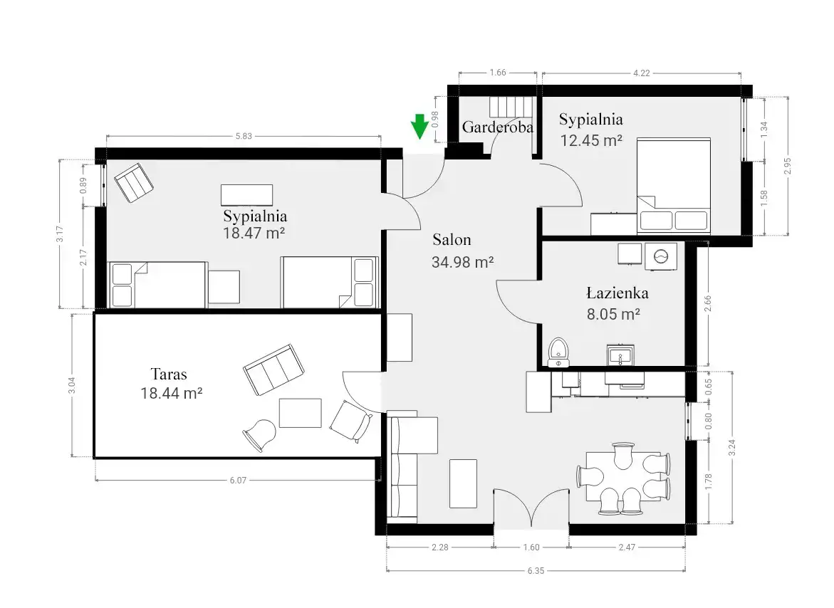 - duży taras (ponad 18 m²),