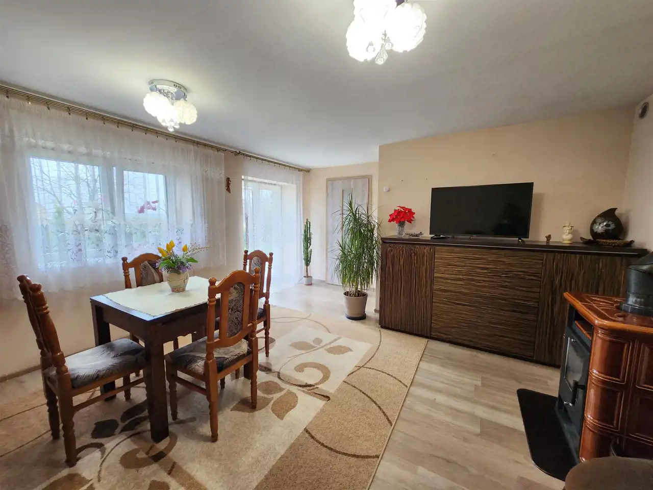 Przestronnego pokoju dziennego z jadalnią, z wyjściem na taras, na którym można wypić poranną kawę i podziwiać otaczającą przyrodę.