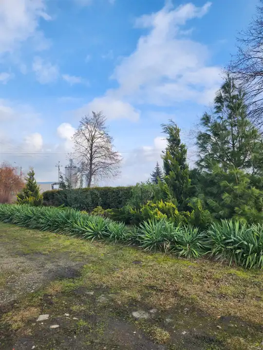 Zagospodarowany ogród z licznymi nasadzeniami, rabatami kwiatowymi oraz drzewami i krzewami owocowymi, tworzący wyjątkową przestrzeń do wypoczynku.