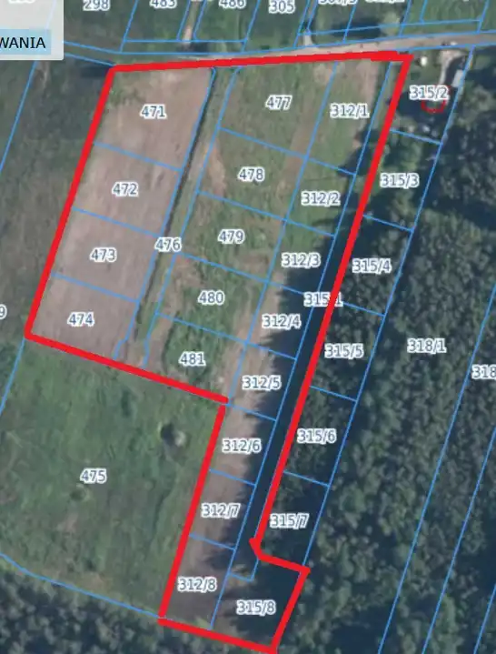 8 działek o powierzchni ok. 550–800 m²