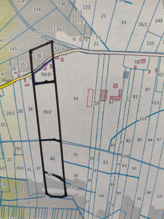 Działka składa się z kilku numerów, na działce o numerze 39/1 o powierzchni 5.117 m2 znajdują trzy budynki mieszkalne, pierwszy składający się z czterech pokoi, łazienki pomieszczenia gospodarczego i garażu, drugi z jednego pokoju, łazienki i pomieszczeń gospodarczych i trzeci drewniany. Dostępne media to prąd i wodociąg w budynkach. Wszystkie budynki zadbane w bardzo dobrym stanie spełniające jedynie funkcję domów letniskowych ponieważ brak w nich jest centralnego ogrzewania. Działka o nr 38/3 o powierzchni 5.716 m2 jest działką leśną znajdującą się po drugiej strony drogi asfaltowej. Działki o numerach 39/2, 40, 41 o powierzchni 4,158 m2 przylegają do działki nr 39/1 i tworzą całość o szerokości 85 m i długości 557 m, do działek tych od asfaltu prowadzi dodatkowo osobna droga dając możliwość osobnej sprzedaży.