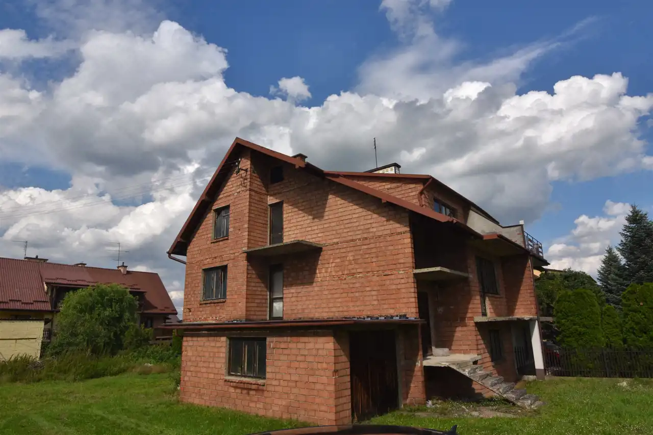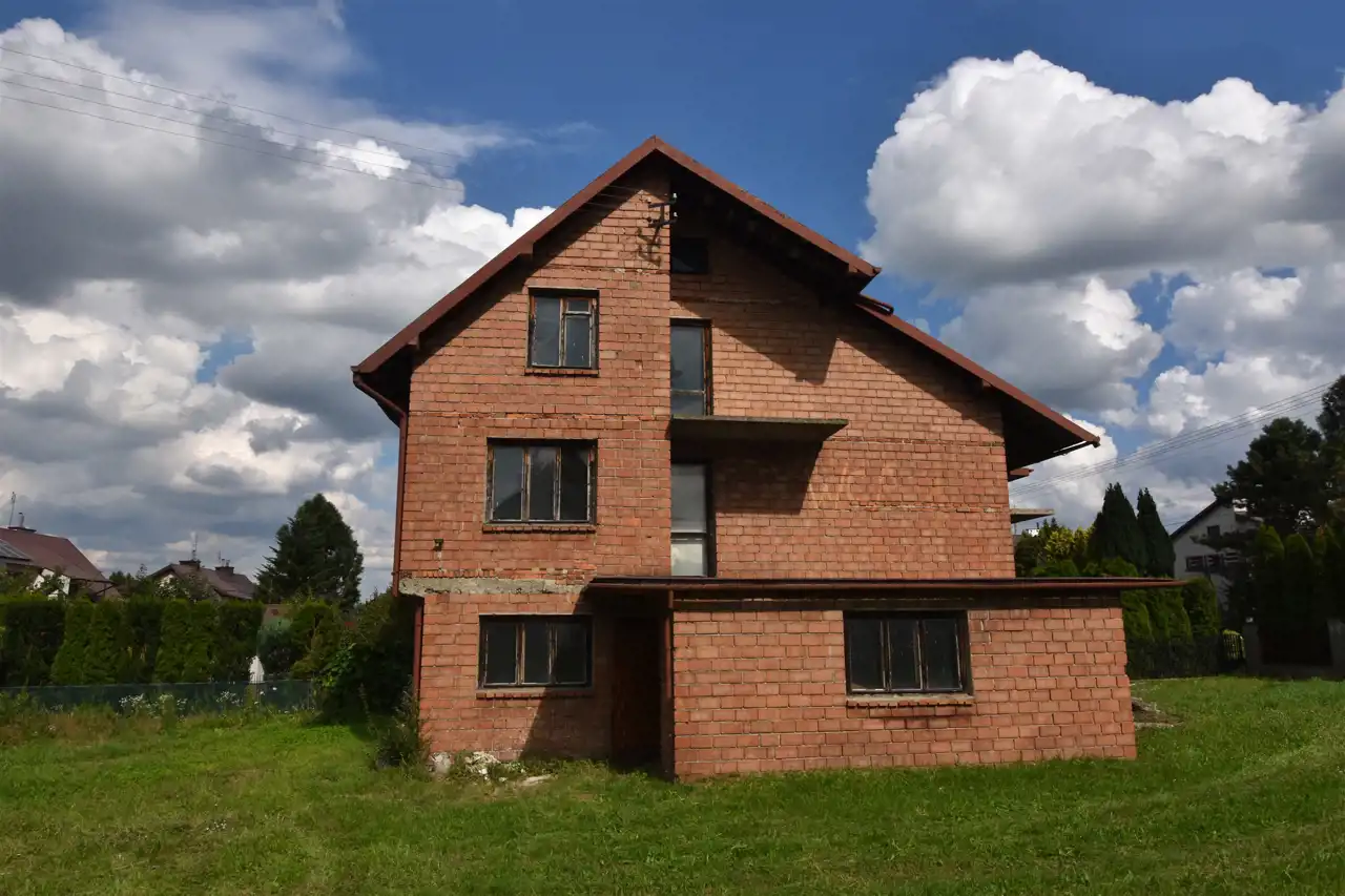 - Dom w stanie surowym zamkniętym (okna drewniane do wymiany)