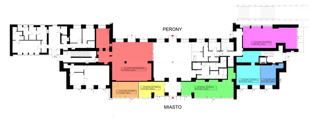 PKP S.A. posiada do wynajęcia lokal użytkowy o powierzchni 131,19 m2 (oznaczony na rzucie - 0.E.1), znajdujący się na parterze budynku w centralnej części dworca, doskonale nadaje się pod działalność gastronomiczną, handlowo-usługową. Lokal wykończony w standardzie deweloperskim, wobec czego wielkim atutem jest możliwość dowolnej adaptacji pomieszczeń.