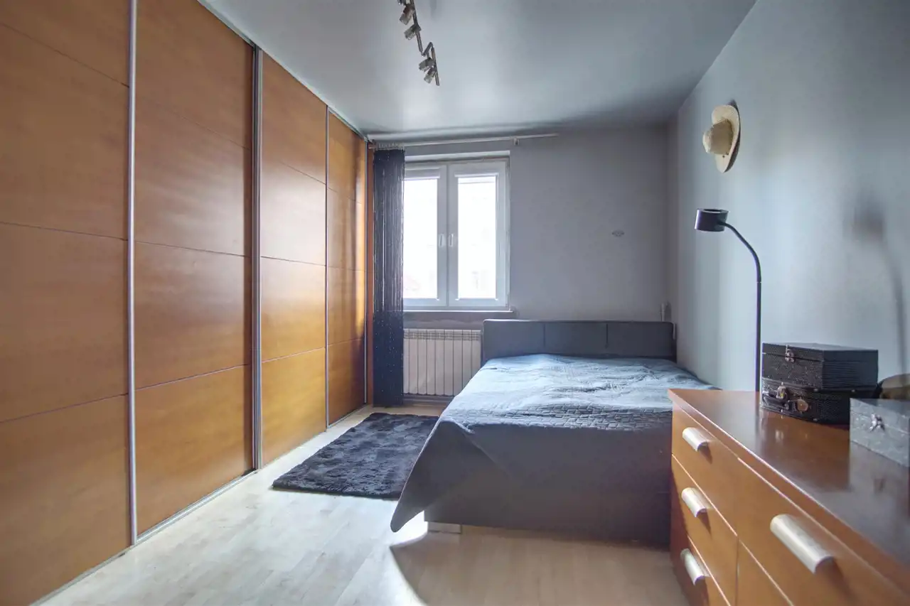 - duża zabudowana szafa na całej ścianie w sypialni
