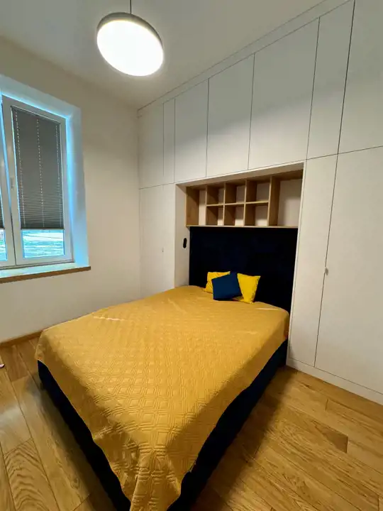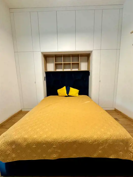 Sypialnia: - łóżko podwójne, funkcjonalne w zabudowie