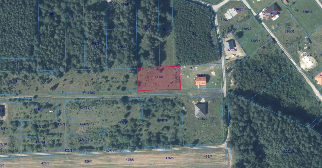 - Działka nr 413/6 – 1601 m2