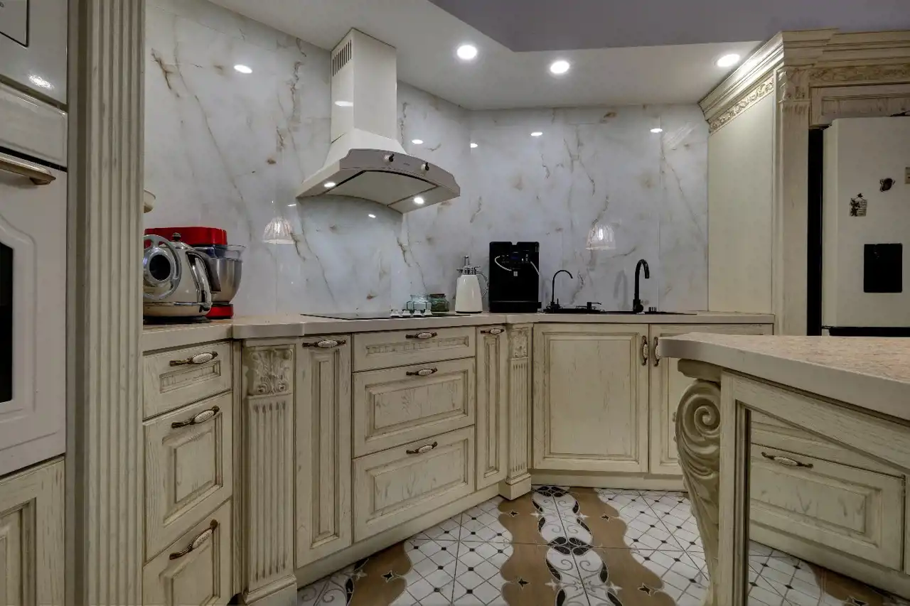 Kuchnia została wykonana i urządzona w lipcu 2024 r. (firma Debora, koszt ok. 48 000 zł). Wyposażenie kuchni: płyta indukcyjna Gorenje, designerski wyciąg Gorenje, lodówka 2-drzwiowa z zamrażalnikiem Hisense, mikrofala Gorenje, piekarnik Gorenje, elektryczny podgrzewacz wody w kuchni Ariston (pod blatem).