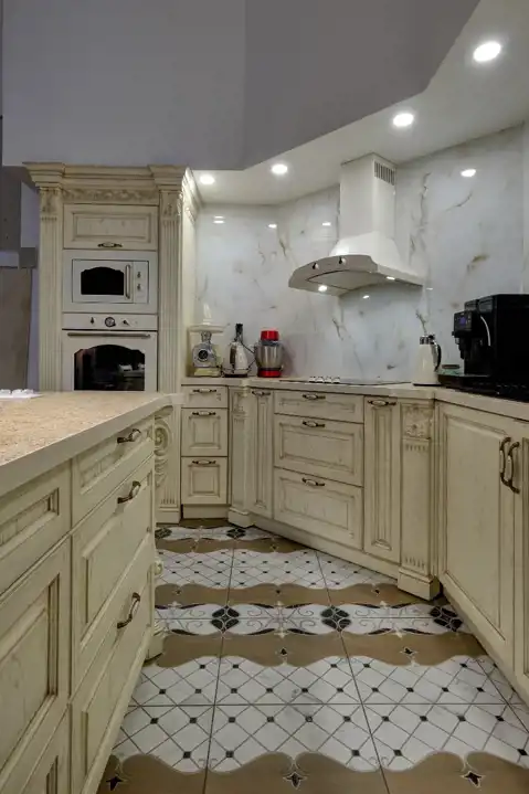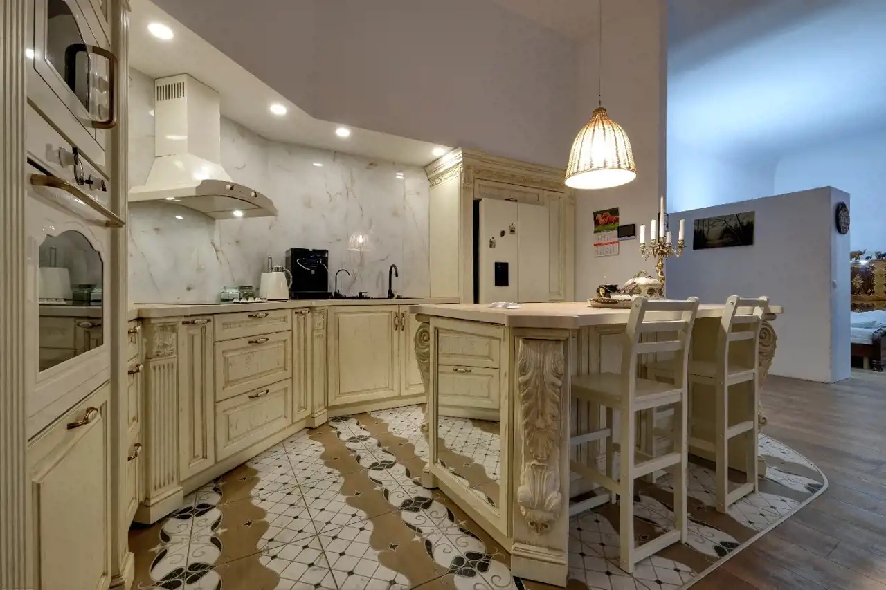 Kuchnia została wykonana i urządzona w lipcu 2024 r. (firma Debora, koszt ok. 48 000 zł). Wyposażenie kuchni: płyta indukcyjna Gorenje, designerski wyciąg Gorenje, lodówka 2-drzwiowa z zamrażalnikiem Hisense, mikrofala Gorenje, piekarnik Gorenje, elektryczny podgrzewacz wody w kuchni Aristton (pod blatem).