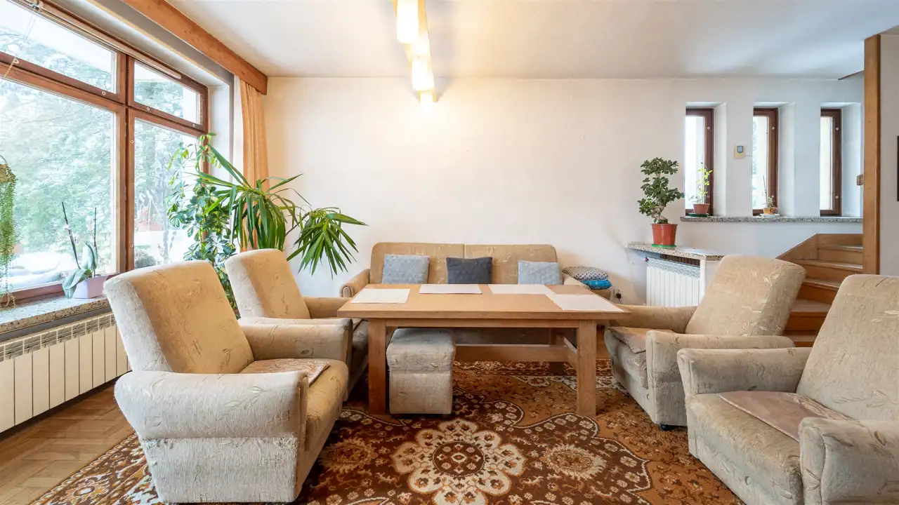 Dom wolnostojący w spokojnej, zielonej części Łysej Góry, z szybkim dojazdem do Krakowa, Bochni i Tarnowa. Nieruchomość o powierzchni ok. 168 m² posadowiona na działce ok. 900 m², z ładnym widokiem na okoliczne wzgórza i lasy. Rok budowy 1985.