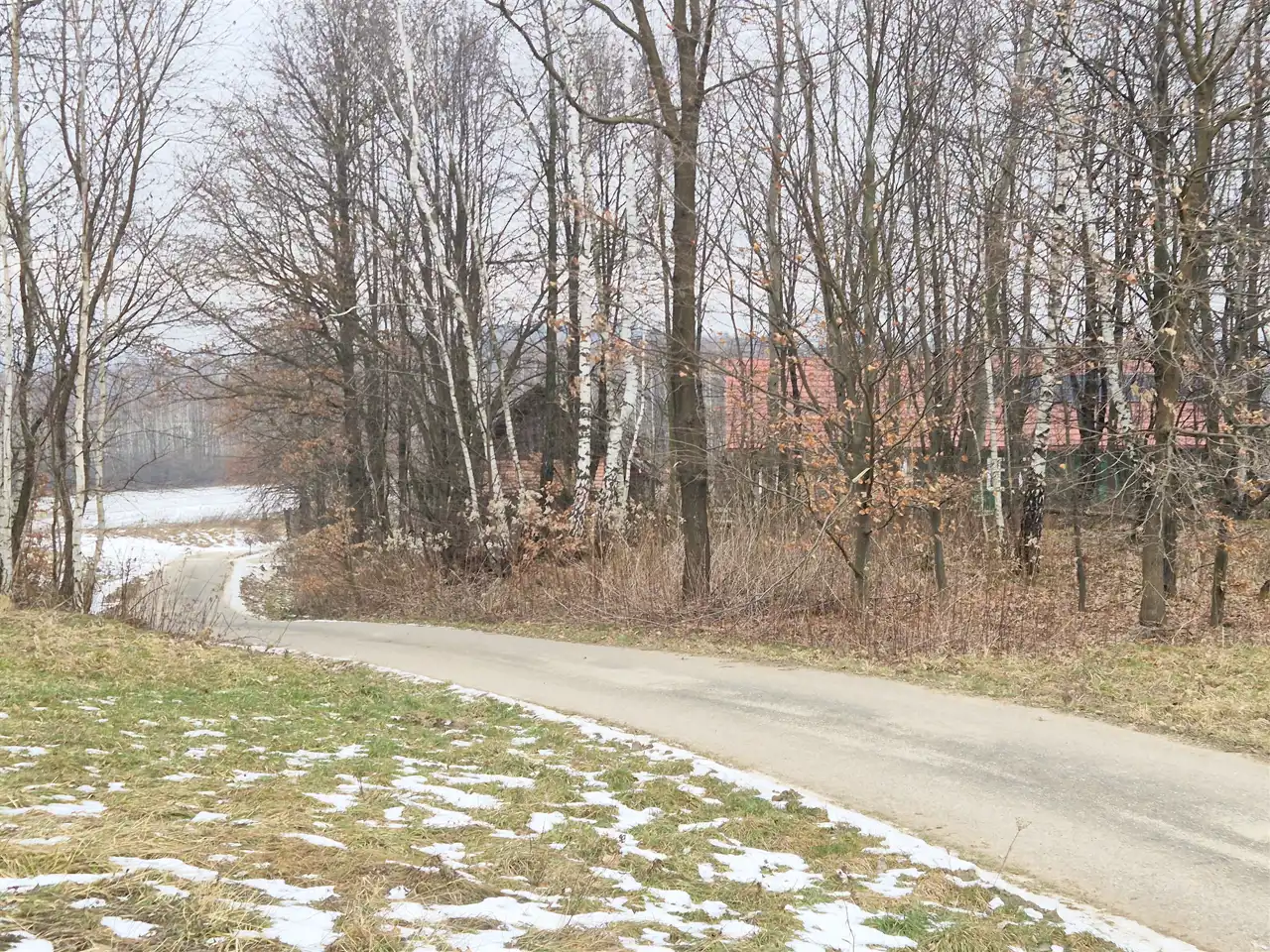 Nieruchomość posiada bezpośredni dostęp do drogi asfaltowej, co zapewnia wygodny dojazd przez cały rok. Działka usytuowana jest na lekko pochyłym terenie, dzięki czemu oferuje piękne, otwarte widoki na okoliczne wzgórza i tereny zielone. W bezpośrednim sąsiedztwie znajdują się lasy co gwarantuje ciszę, spokój oraz kontakt z naturą.