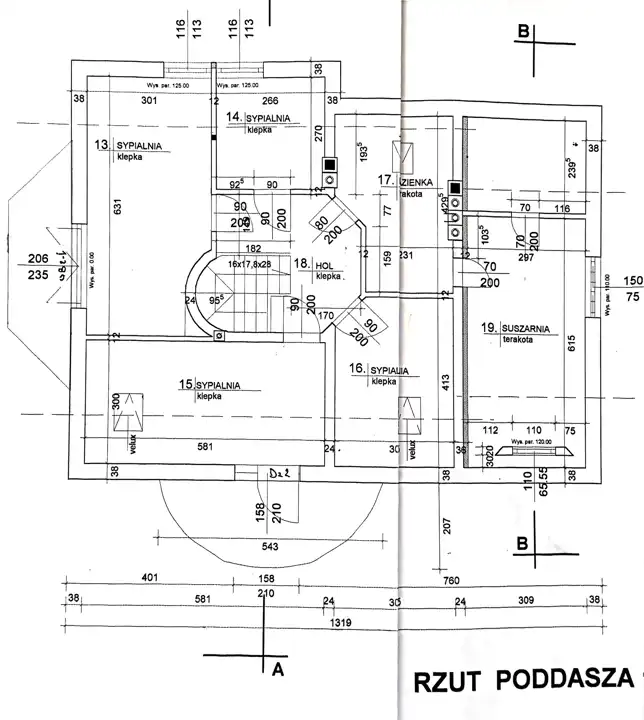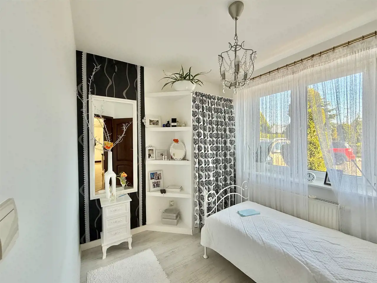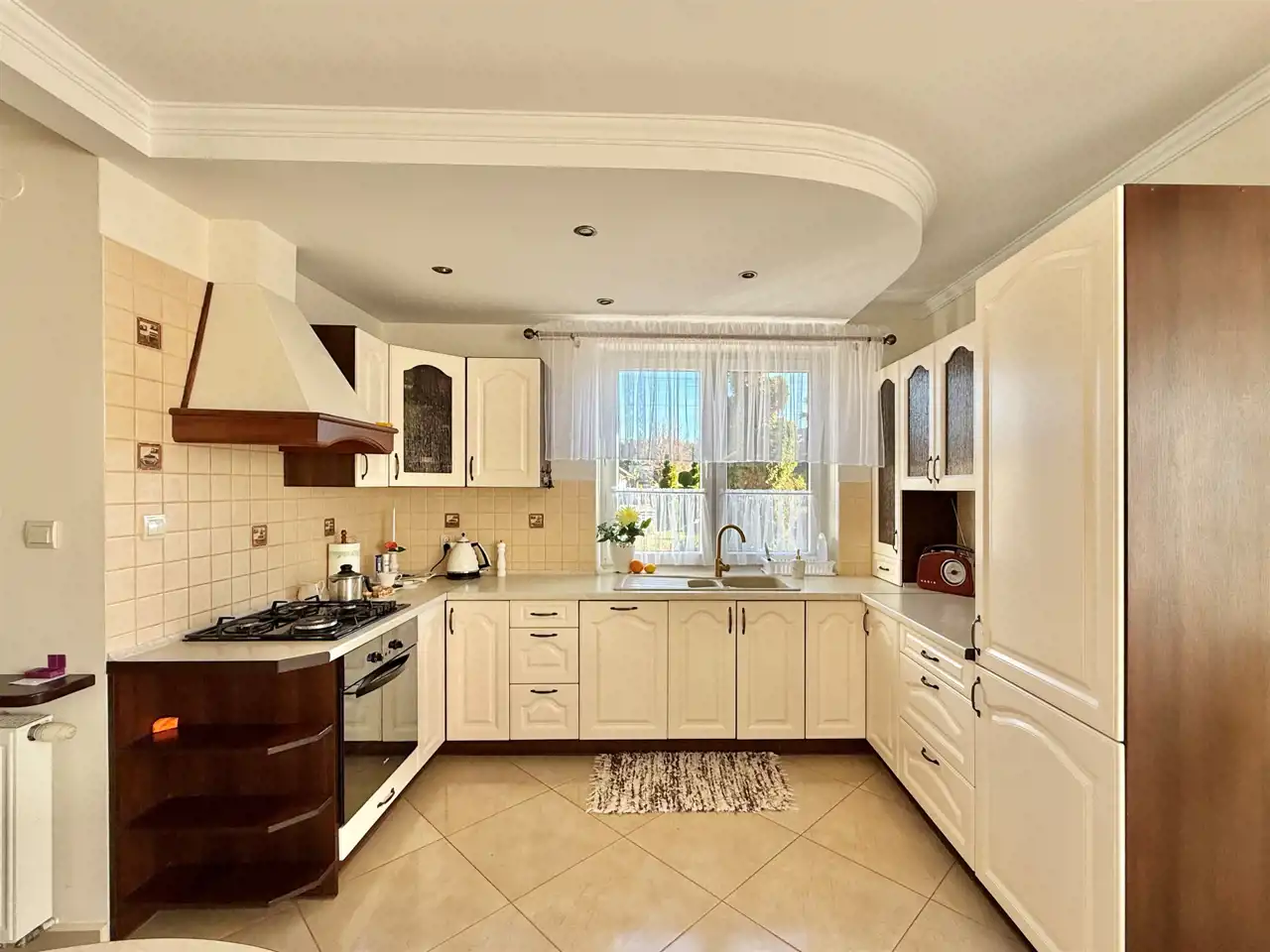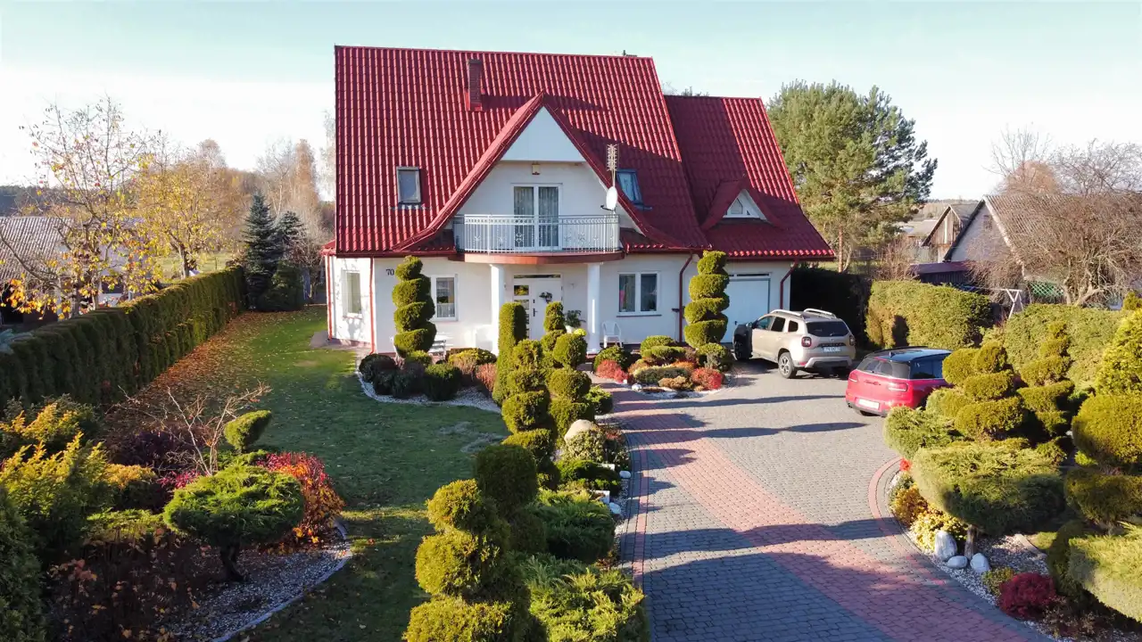 Powierzchnia użytkowa około 213 m2. Dom murowany, 2-kondygnacyjny w stylu klasycznym z garażem na jeden samochód. Składa się z 6 pokoi (dwóch dużych sypiania w tym jednej z balkonem oraz 4 mniejszych), salonu z kominkiem, jadalni, kuchni, 2 łazienek (wanna, prysznic), suszarni oraz kotłowni. Cały dom jest w bardzo dobrym stanie, nie wymaga żadnych nakładów finansowym.