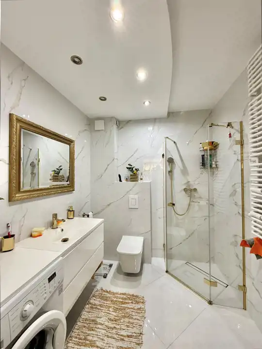 Ogrzewanie: piec gazowy 2-funkcyjny + kominek tradycyjny w salonie