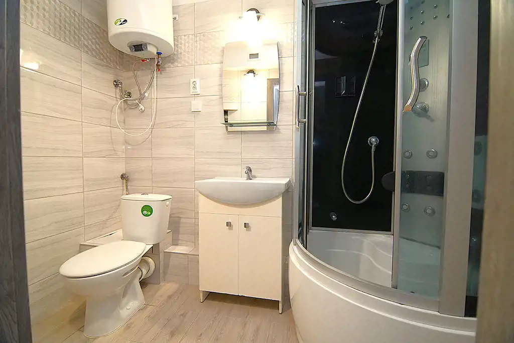 - Media Ogrzewanie: elektryczne; Woda: ciepła - piecyk
