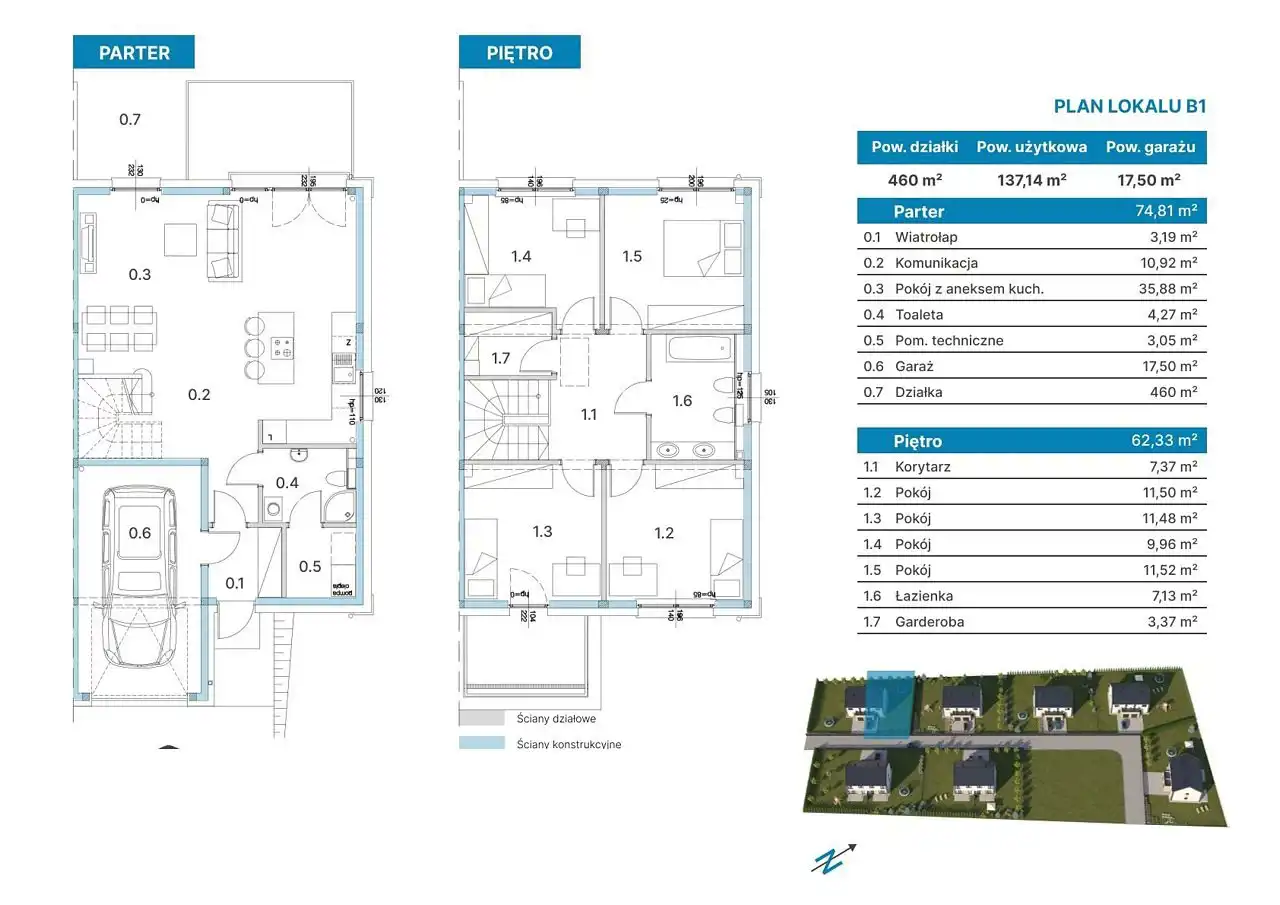 Dom w tej inwestycji to idealny wybór dla rodzin oraz osób pracujących zdalnie, które potrzebują większej liczby pokoi, komfortowej strefy dziennej oraz własnej przestrzeni zielonej. Duża działka, garaż i funkcjonalny układ sprawiają, że to oferta wyróżniająca się na tle innych nowych domów w okolicy.