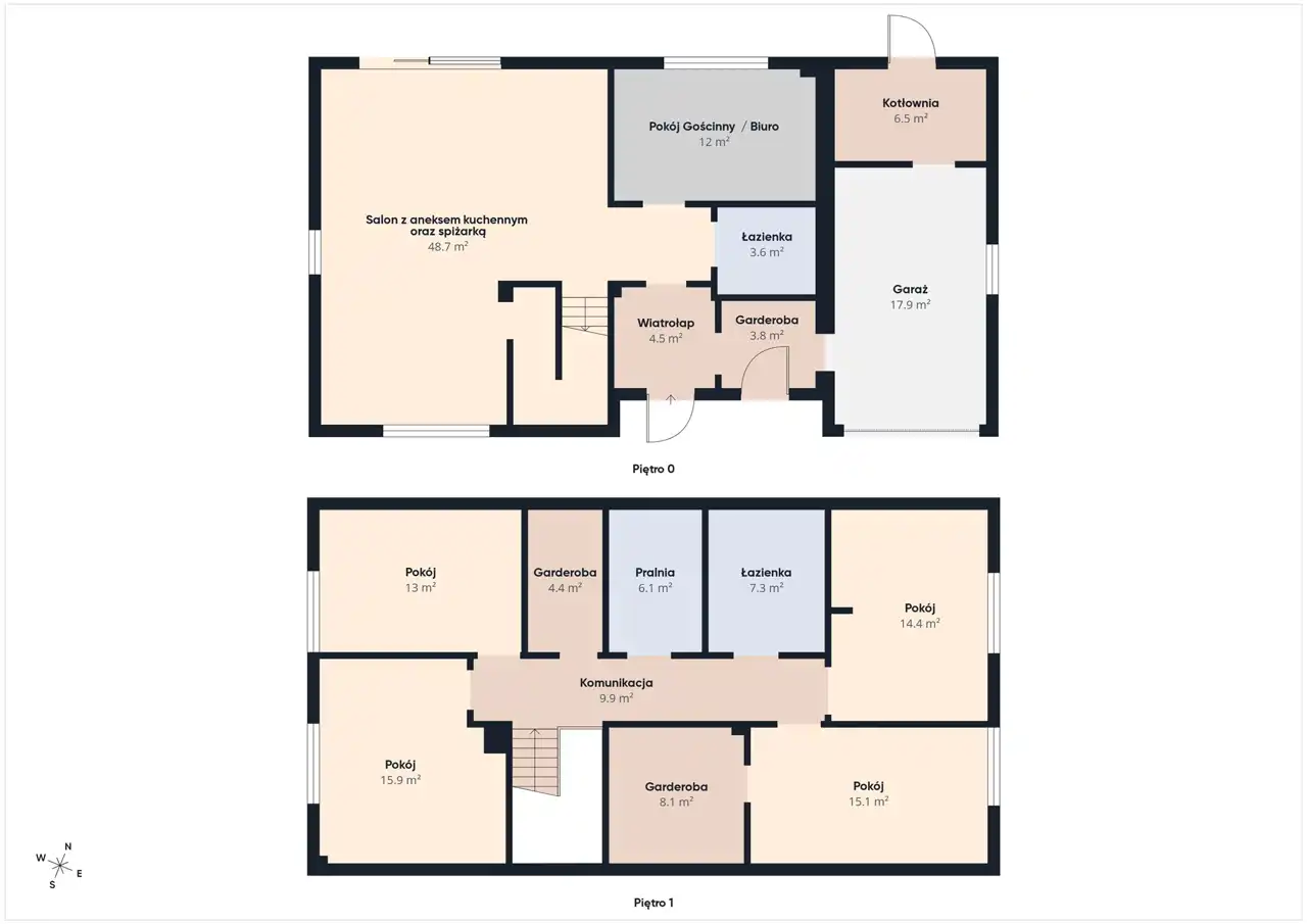 Powierzchnia całkowita domu 197,62 m2, powierzchnia użytkowa 172,62 m2.