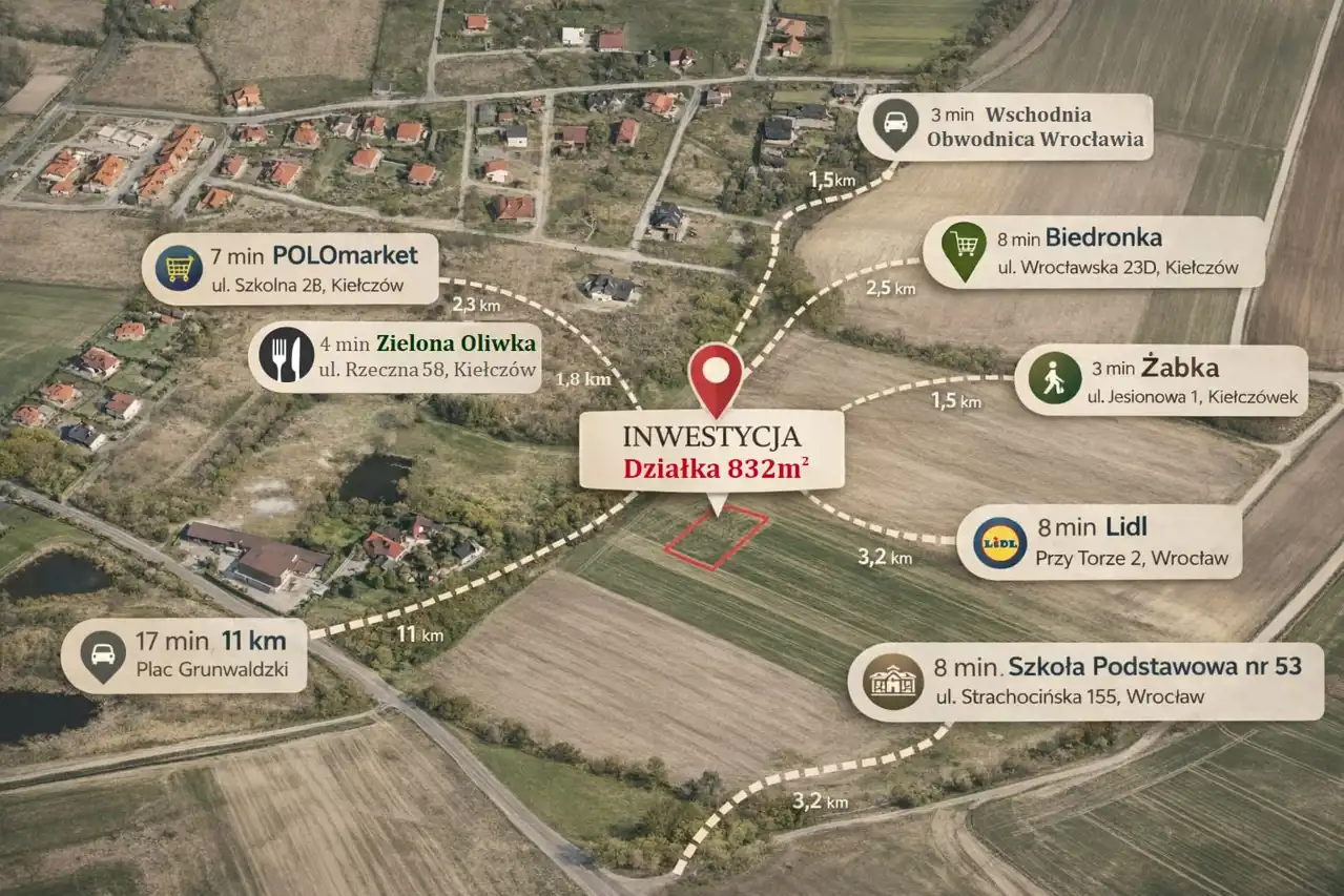 - Niecały 1 km od granicy Wrocławia (w linii prostej)