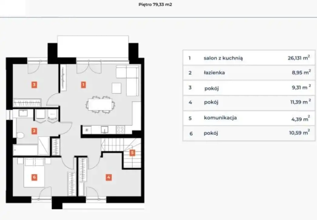 - Charakterystyka mieszkania 79.33 m2, 4 pokoje