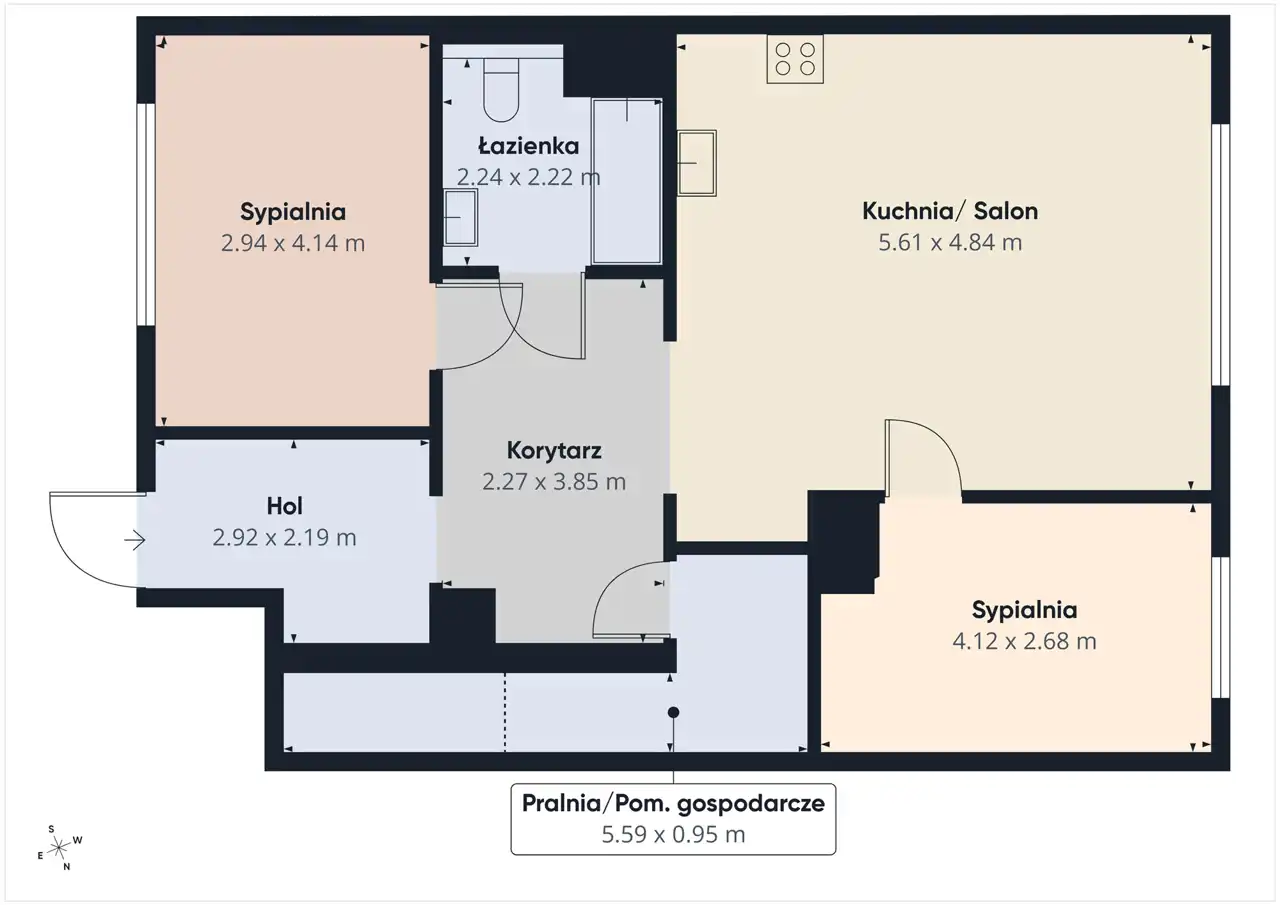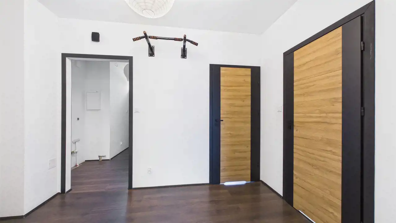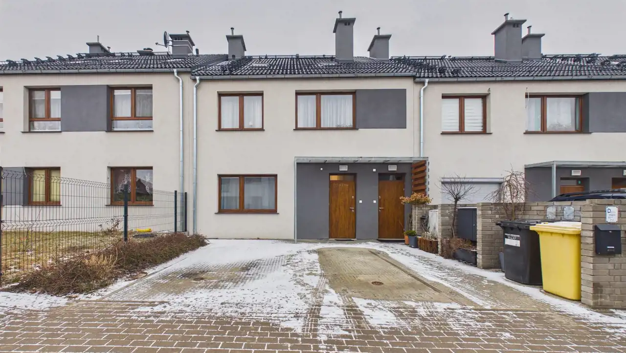 Mieszkanie na parterze składa się z przestronnego salonu z aneksem kuchennym, dwóch przytulnych sypialni, łazienki oraz dodatkowego pomieszczenia gospodarczego (pralnia/schowek). Przemyślany układ to maksymalna wygoda dla całej rodziny.