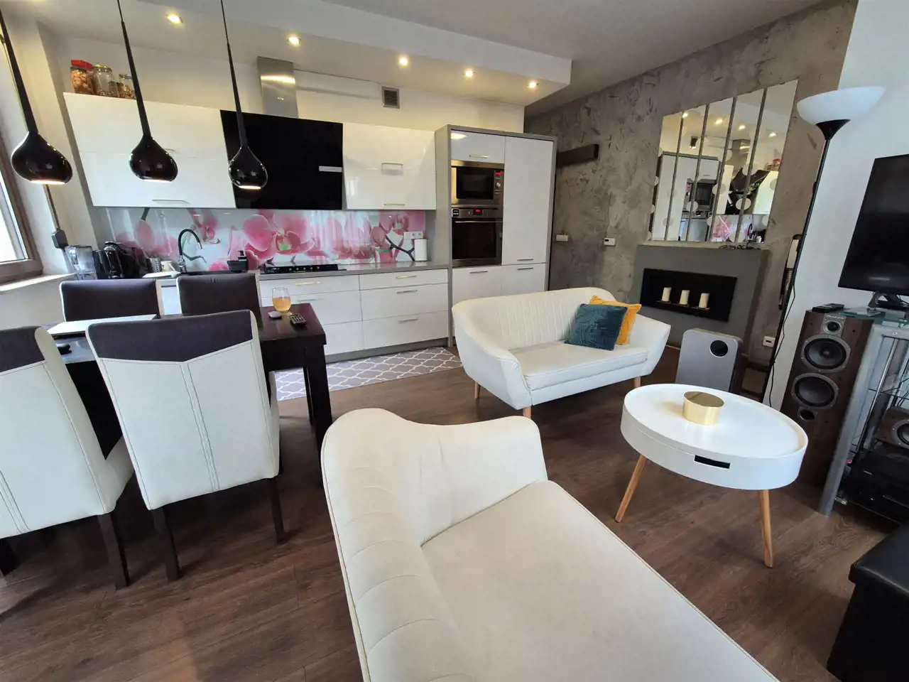 Widoczne na zdjęciach umeblowanie i wyposażenie zostaje w cenie lokalu, za wyjątkiem paru pojedynczych rzeczy.