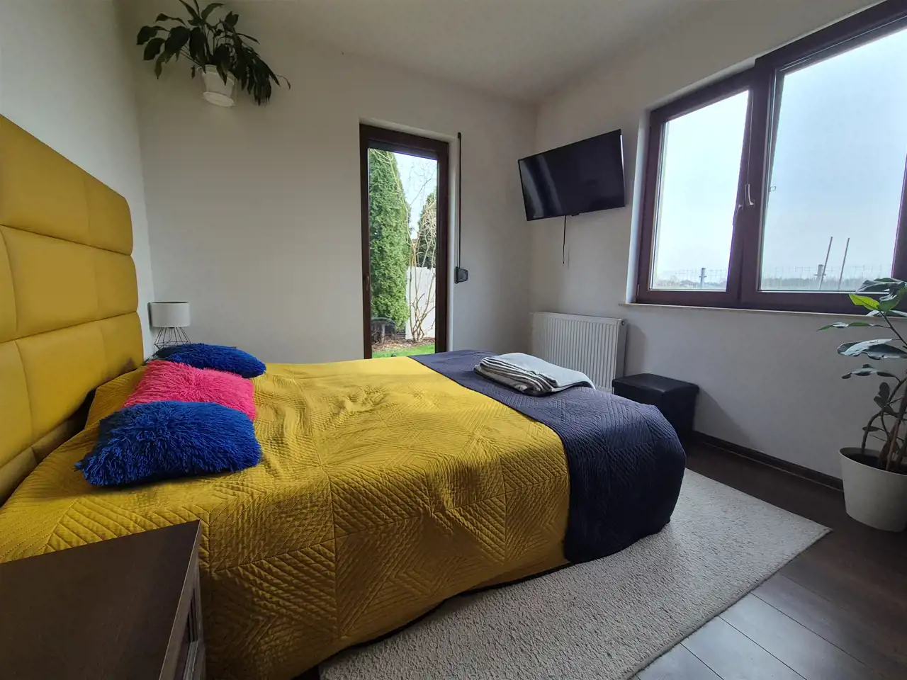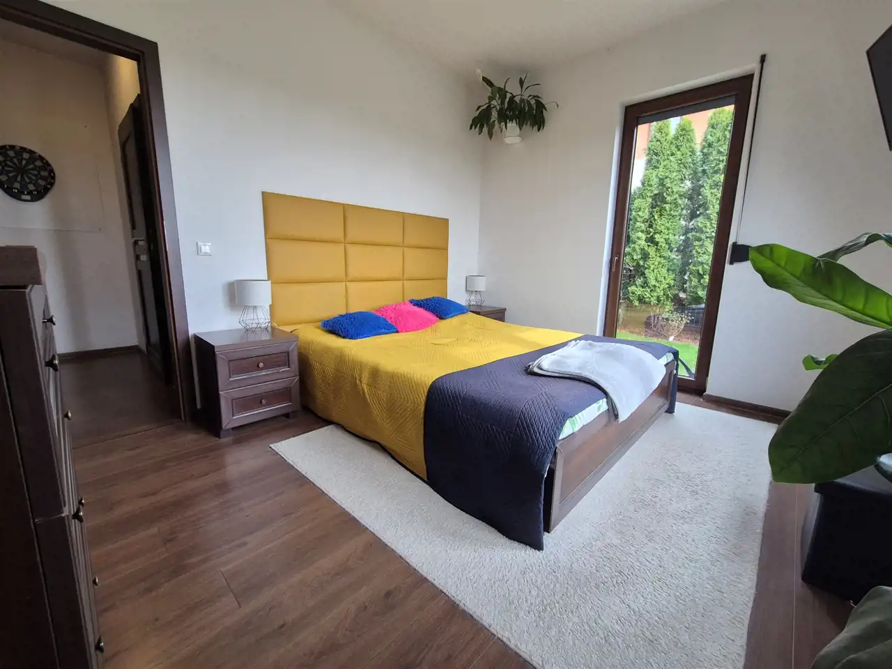 2 sypialnie ok. 12 m2, jedna z dużymi szafami, druga z dużym łóżkiem sypialnianym, oby dwie z wyjściem na ogród.