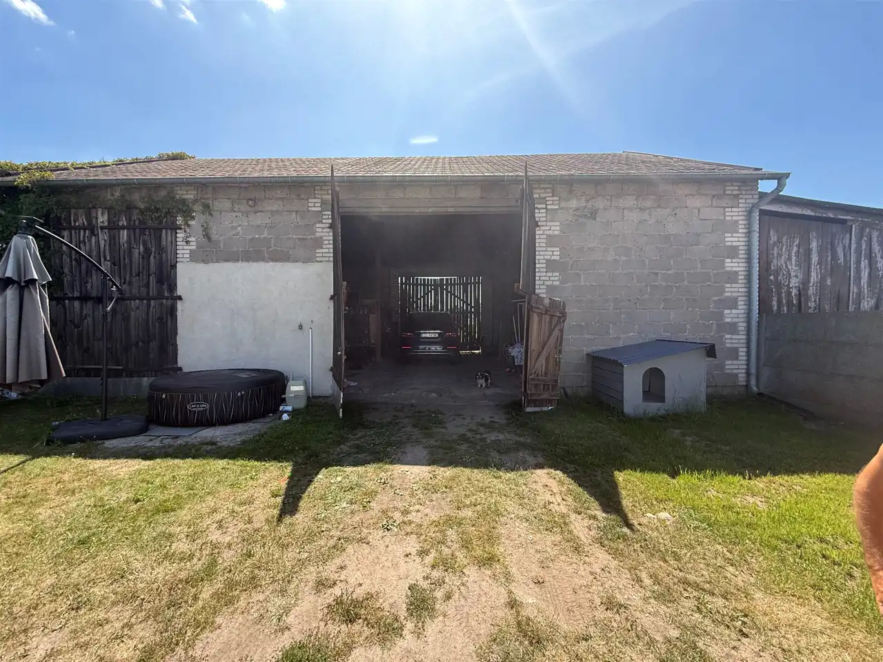 Na działce budynek gospodarczy o pow. 85 m2 posiadający dwa garaże oraz letnią kuchnię, stodoła o pow. 140 m2