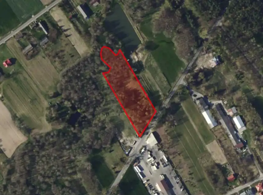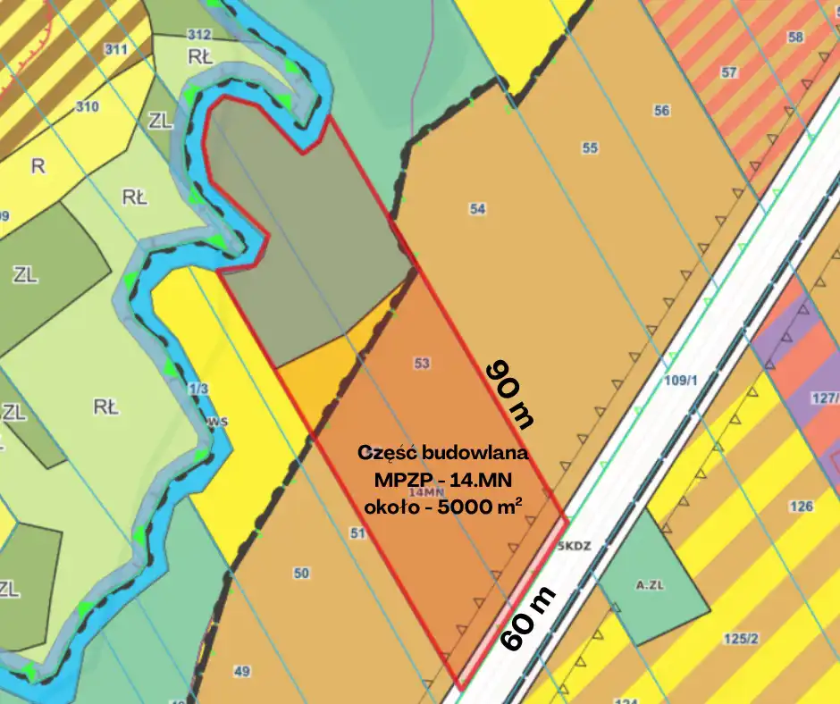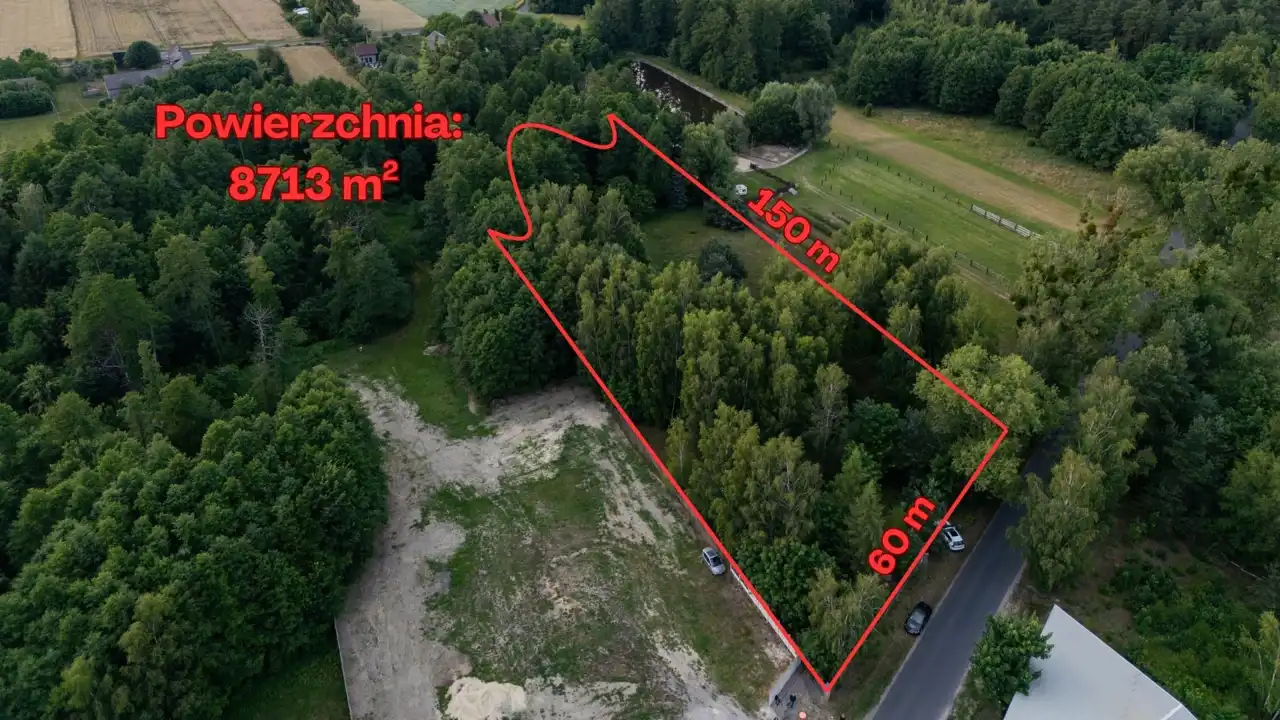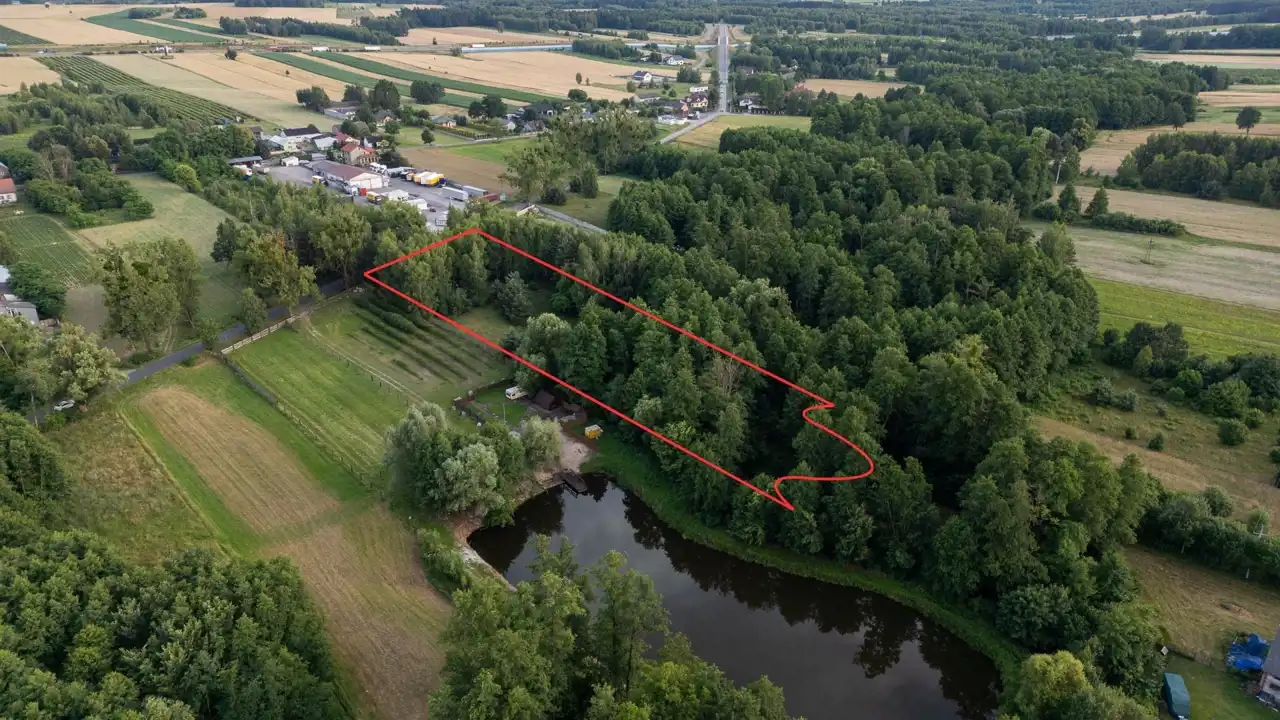 Działka o powierzchni 8724 m2 znajduje się w malowniczej okolicy bezpośrednio nad rzeką Mrożycą.
