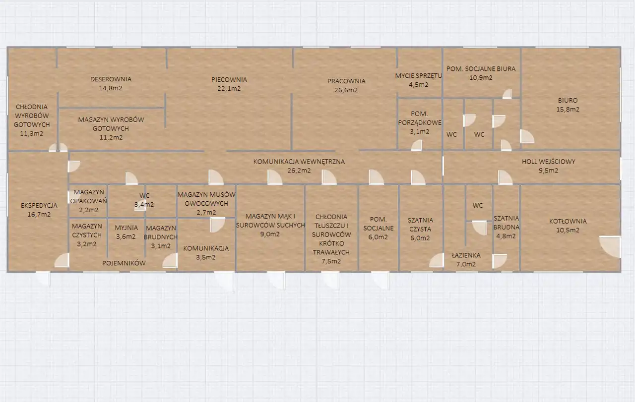 Istnieje możliwość sprzedaży nieruchomości jako działający zakład produkcyjno- usługowy lub jako budynek z wyposażeniem dla cukierni bądź też bez wyposażenia pod inną działalność.