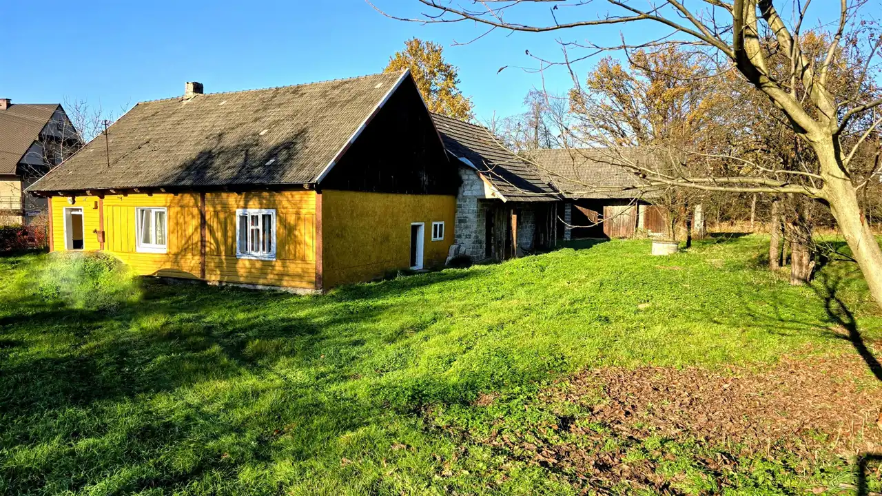 Na sprzedaż duża działka o powierzchni 3800 m² z drewnianym domem, położona w malowniczej okolicy w rejonie Dobczyc, w powiecie myślenickim.