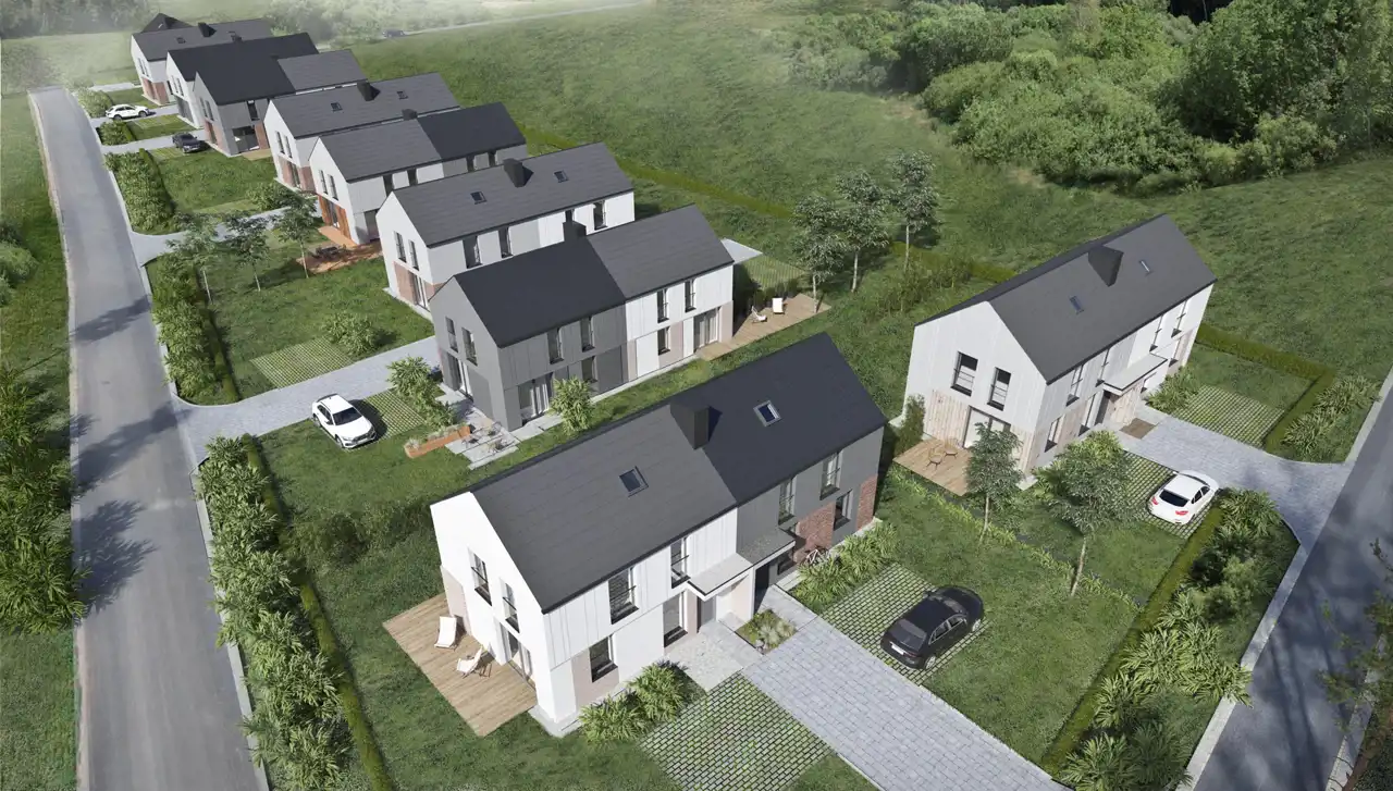 Milenijne Wzgórze to w pierwszym etapie 4 domy w zabudowie bliźniaczej o powierzchniach 96 m2.