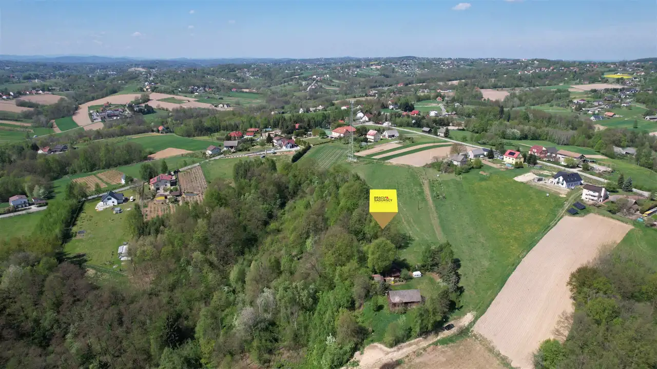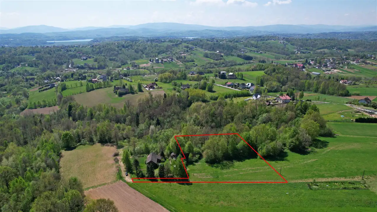 Działka rolna z drewnianym domem w Nowej Wsi, gm. Dobczyce