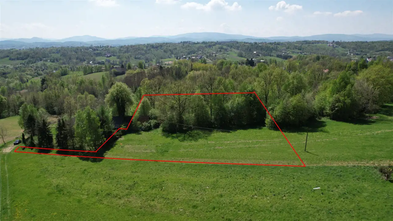 Oferujemy na sprzedaż malowniczo położoną działkę rolną o powierzchni 6004 m² (0,6004 ha) z drewnianym domem do remontu w Nowej Wsi, gmina Dobczyce.