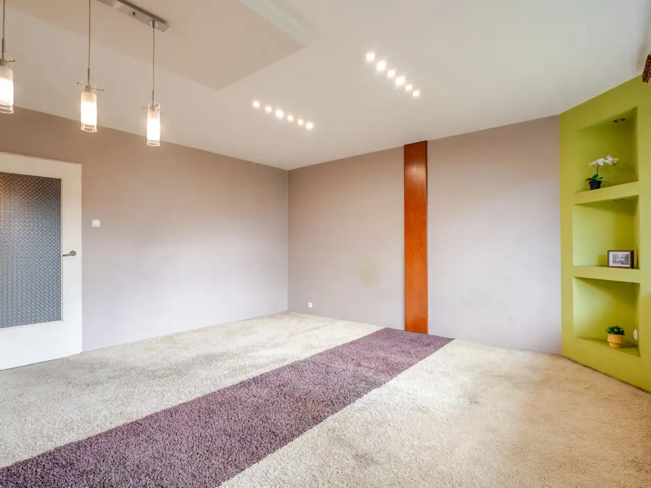 przestronny salon z wyjściem na balkon,