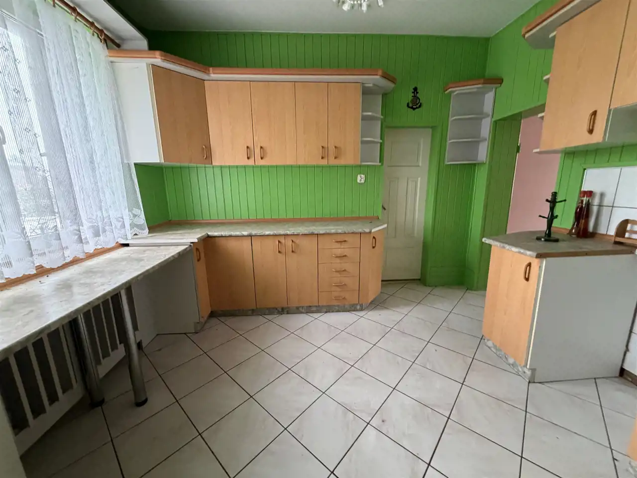 Dom położony bardzo urokliwie, wprawdzie w sąsiedztwie innych zabudowań, lecz działka w kształcie zbliżonym do prostokąta porośnięta drzewami i krzewami sprawia, że można w nim odczuć spokój i dużą dozę prywatności. Dom powojenny wybudowany w roku 1965 bardzo klimatyczny i przestronny. Wejście do domu jest od strony podwórka przez wygodny i bardzo przestronny hall z miejscem do przechowywania odzieży wierzchniej i obuwia a następnie przedpokój który prowadzi do jasnej kuchni w kształcie kwadratu sąsiadującej bezpośrednio z łazienką wyposażoną zarówno w prysznic jak i wannę. Kolejnymi pomieszczeniami na parterze w strefie dziennej domu są trzy duże pokoje doskonałe jako salon, gabinet i pokój dzienny oraz pomieszczenie gospodarcze mogące pełnić funkcję spiżarni. Natomiast na poddaszu są kolejne dwa przestronne pokoje spełniające funkcję sypialni i strefy nocnej domu. Nieruchomość wymaga remontu co daje możliwość własnej aranżacji wnętrz. Budynek posiada dwie piwnice, a w jednej z nich znajduje się kocioł centralnego ogrzewania na paliwo stałe. Do podgrzania wody służy podgrzewacz elektryczny.