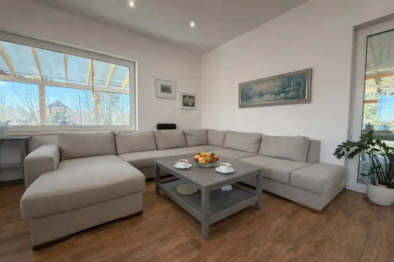Wyobraź sobie poranek, w którym zamiast hałasu miasta budzi Cię cisza i śpiew ptaków. Otwierasz oczy w domu, który od pierwszego dnia daje poczucie spokoju. Wstajesz, przechodzisz przez przytulny przedpokój i kierujesz się do salonu, gdzie przez duże okna wpada naturalne światło, a za nimi rozciąga się widok na zieleń – park, który zawsze tam będzie, niezakłócony żadną zabudową.