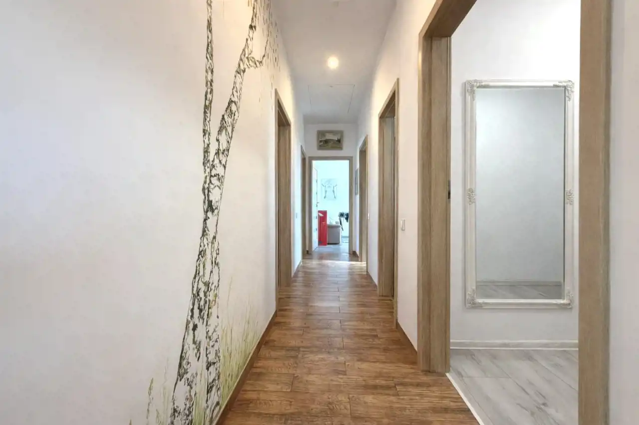 Nawet w chłodniejsze dni panuje tu przyjemne ciepło. Ogrzewanie podłogowe otula każdy krok, a w razie potrzeby w każdym pomieszczeniu możesz włączyć sufitowe promienniki podczerwieni, które szybko podnoszą temperaturę i dają natychmiastowy komfort. Wieczorem możesz rozpalić w kominku i stworzyć klimat, którego nie da się zastąpić niczym innym.