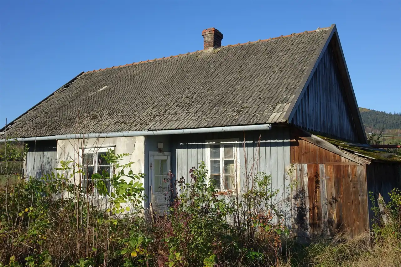 Budynek wykonany z bali, kryty dachówką betonową. Powierzchnia całkowita 70m2, użytkowa 30m2 na co składają się dwie izby i sień. Aktualnie w stanie do generalnego remontu lub wyburzenia.
