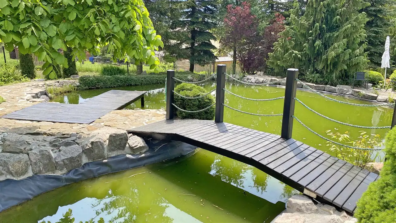 Dom wybudowano z cegły w 1937 r., w 2014 r. przeszedł gruntowny remont (wymiana instalacji centralnego ogrzewania, wodno-kanalizacyjnej, elektrycznej, okien, drzwi i dachu). Dach pokryty jest dachówką ceramiczną, ocieplony, podobnie jak ściany. Okna PCV z okleiną drewnopodobną. Podłogi pokryte panelami oraz terakotą. Centralne ogrzewanie gazowe, instalacja fotowoltaiczna ok. 10 kW oraz kolektory słoneczne podgrzewające wodę i basen. Budynek odświeżony w 2023 r., a nawierzchnia kortu została wymieniona.