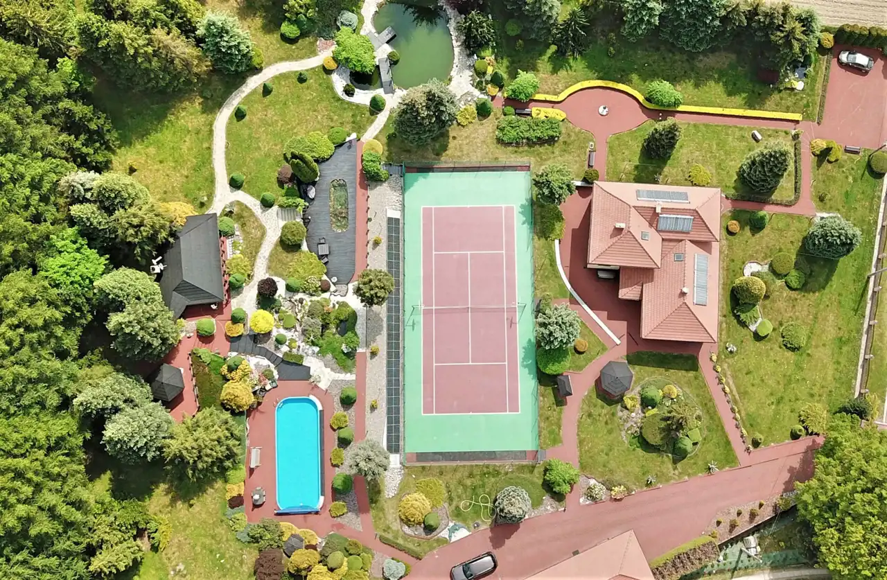 Biuro nieruchomości Waweldom, sprzedaż posiadłości Beskid Wyspowy, nieruchomości Limanowa, domy na sprzedaż Beskidy, willa z basenem Limanowa, działka z kortem tenisowym, posiadłość blisko Krakowa, nieruchomości w górach, nieruchomości z fotowoltaiką, dom z ogrodem na sprzedaż.
