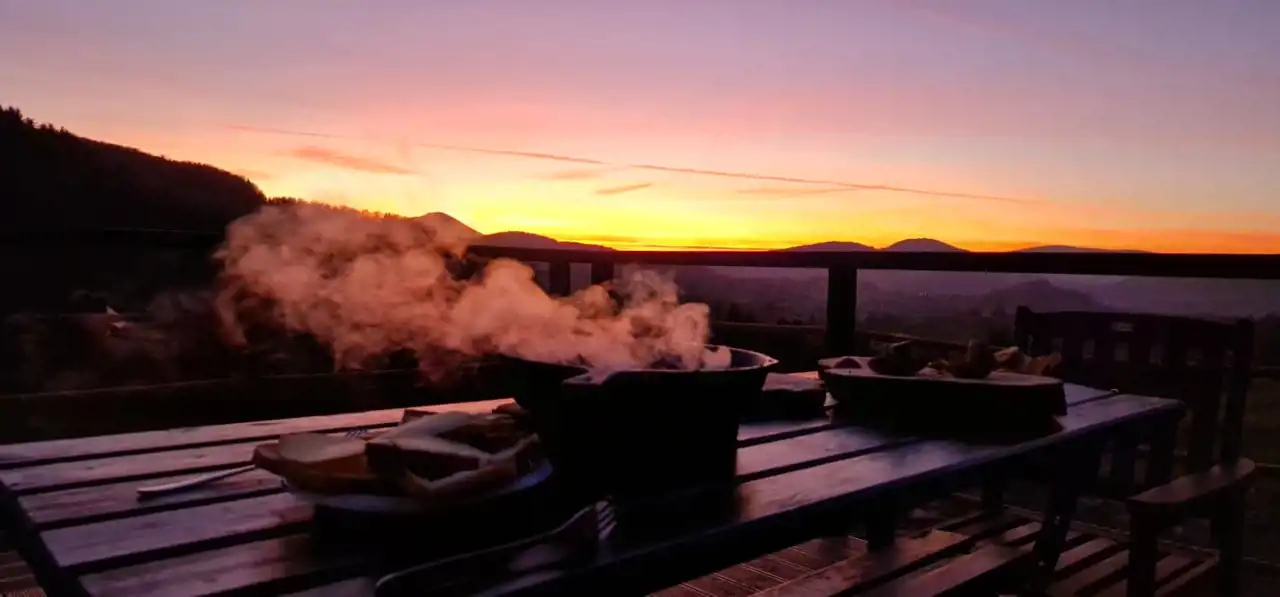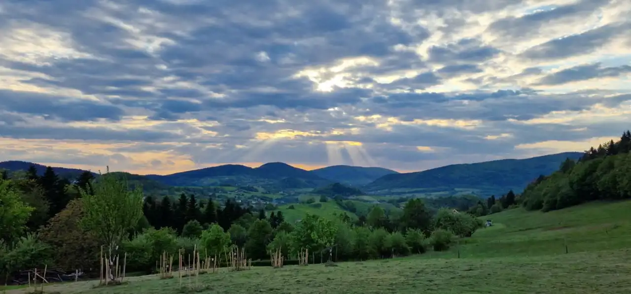 Położona w samym sercu Beskidu Wyspowego, na doskonale nasłonecznionym stoku o ekspozycji południowo-zachodniej, oferuje panoramiczne widoki, ciszę, czyste powietrze i bezpośrednie sąsiedztwo lasu. To miejsce, w którym każdy zachód słońca wygląda inaczej – i każdy robi wrażenie.