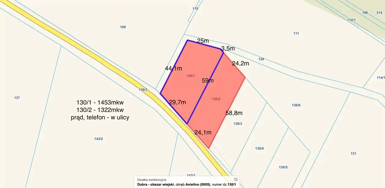 numery ewidencyjne - 130/1, 130/2 (1322m2)
